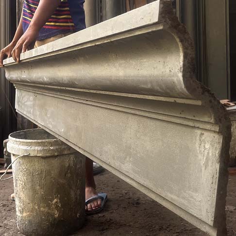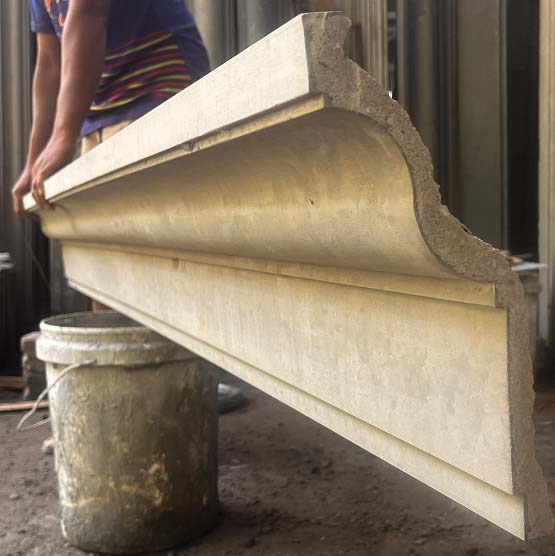 GRC (Glassfibre Reinforced Concrete) yang memungkinkan finishing motif dan tahan terhadap cuaca.