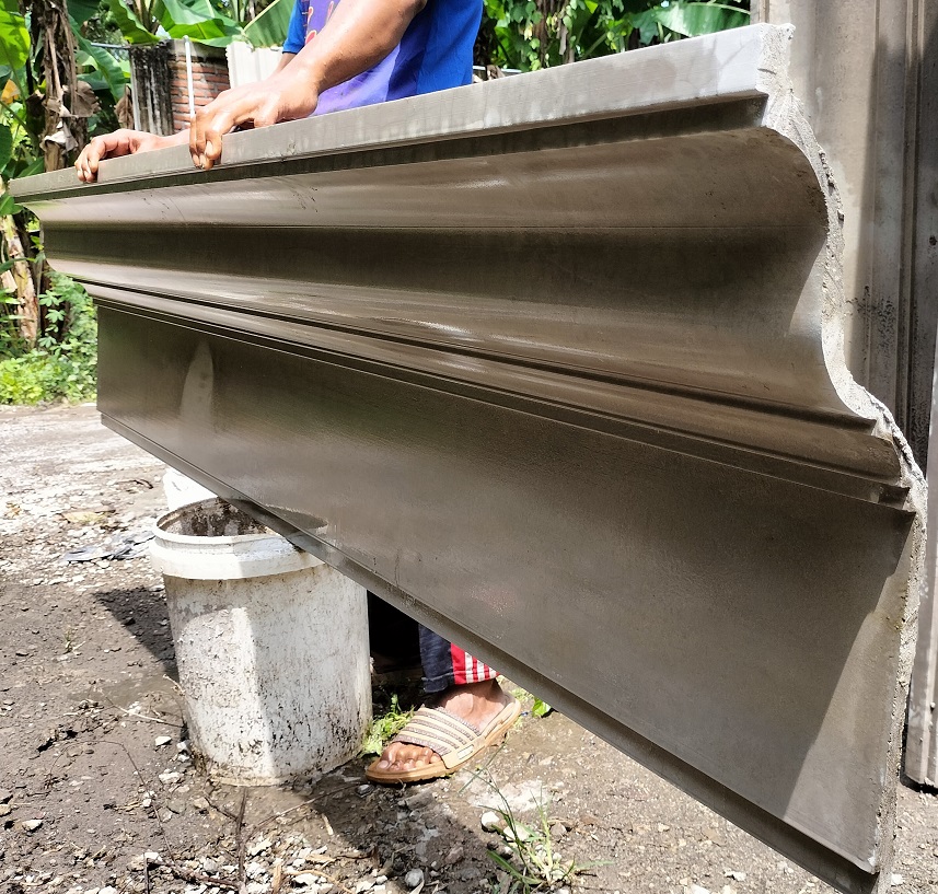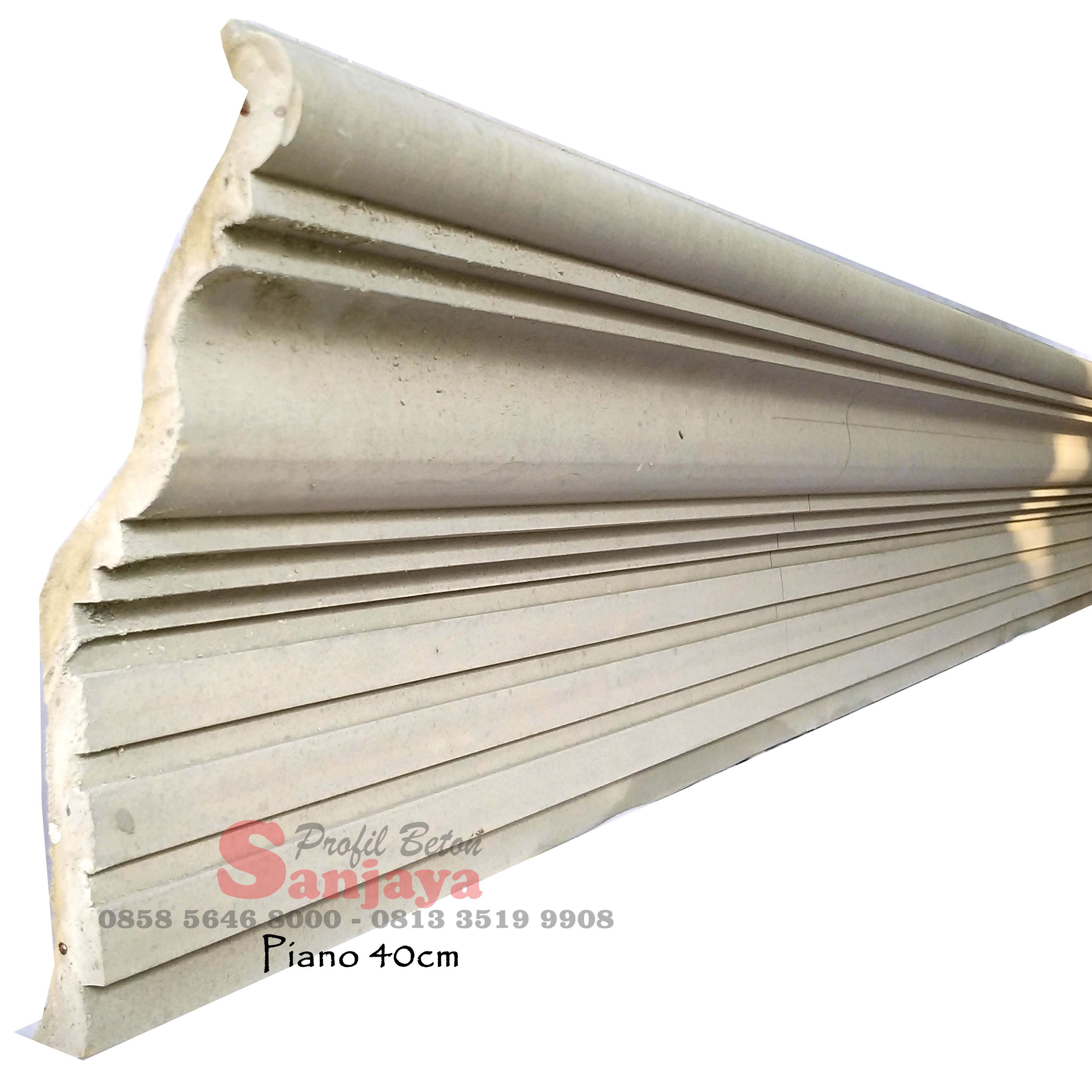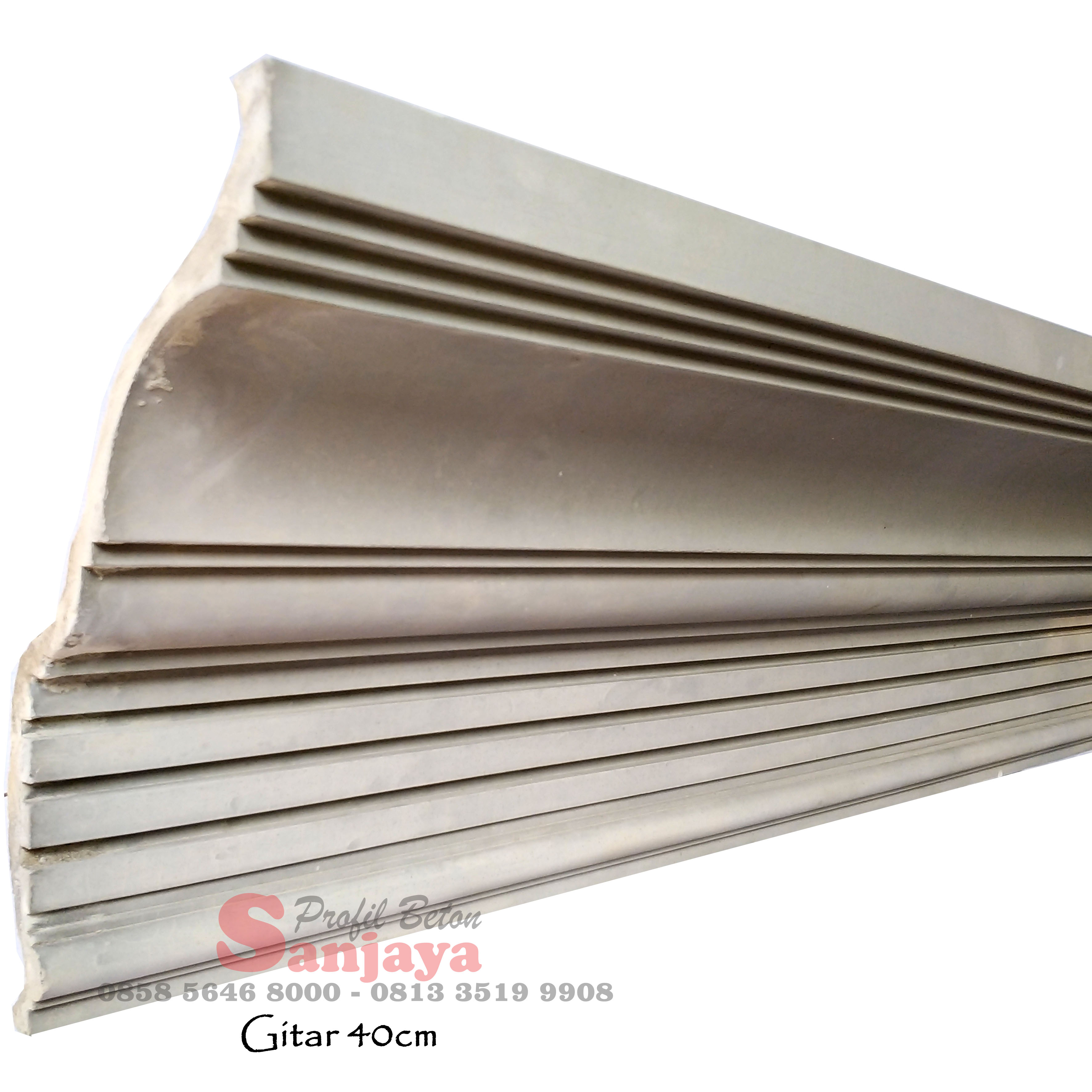 Lebar sekitar 40 cm, dengan permukaan berprofil “serutan” yang memberikan efek tekstur variatif. Terbuat dari beton pracetak (bahan semen + pasir gunung Kelud) yang diproduksi oleh Wongsanjaya. Wong Sanjaya Cocok untuk tepi atap atau fasad rumah skala sedang yang menginginkan tampilan detail estetis dengan tekstur. Banyak variasi motif dan ukuran bisa disesuaikan (karena Wongsanjaya menyebut “desain selalu terbarukan … ukuran bisa disesuaikan kebutuhan”). Wong Sanjaya Kalau mau, saya bisa cari info harga per meter, ketebalan standar, dan contoh motivasi pemasangan untuk varian ini.