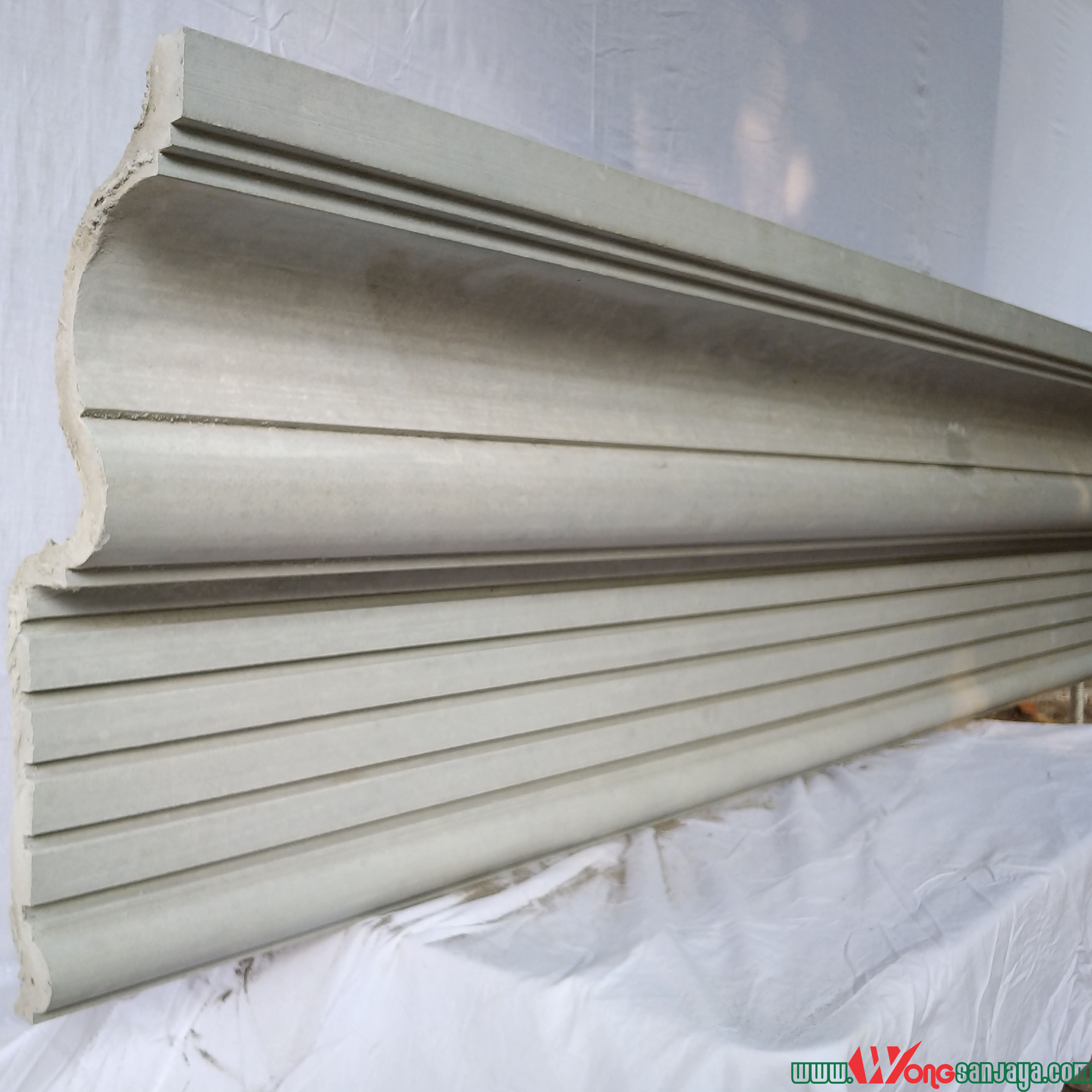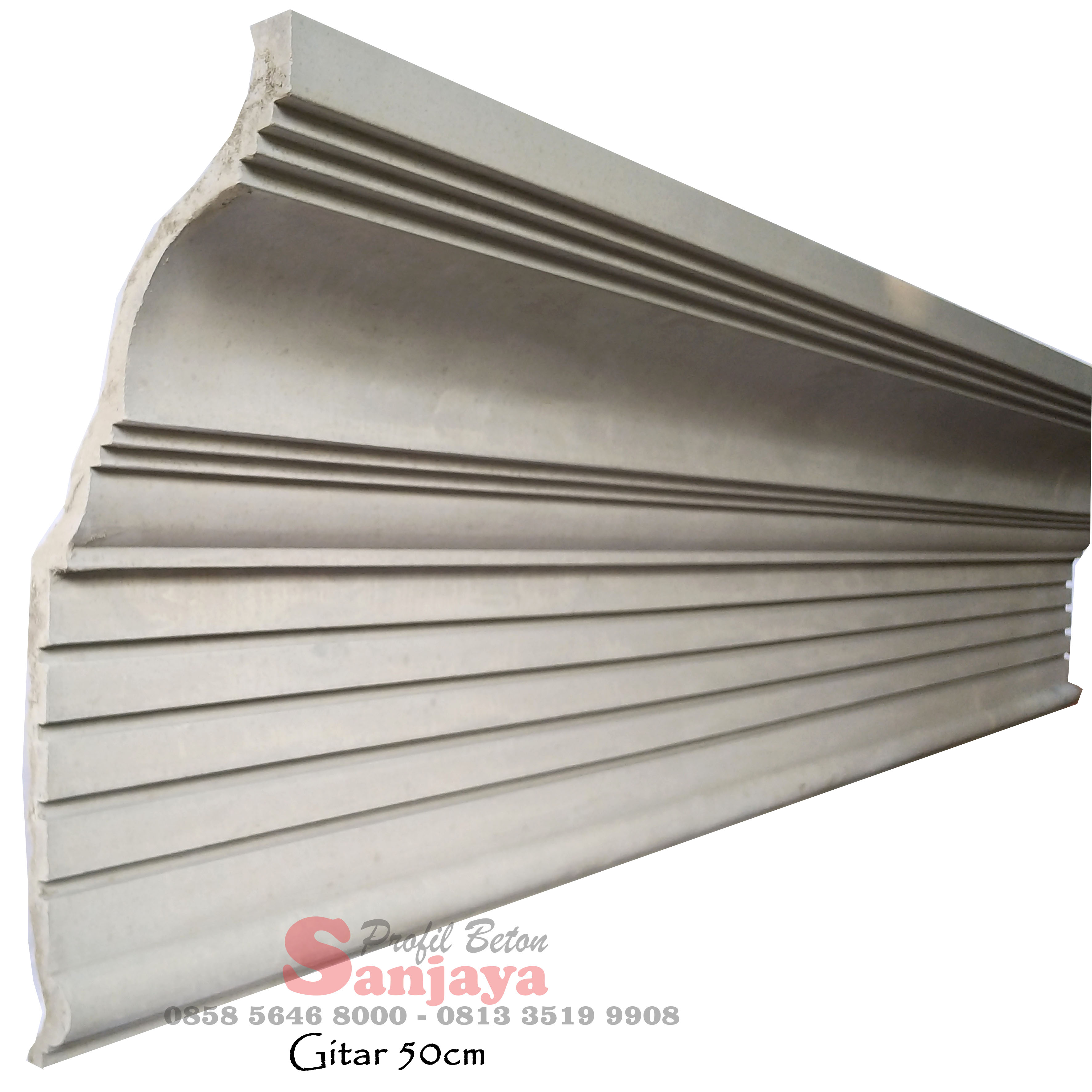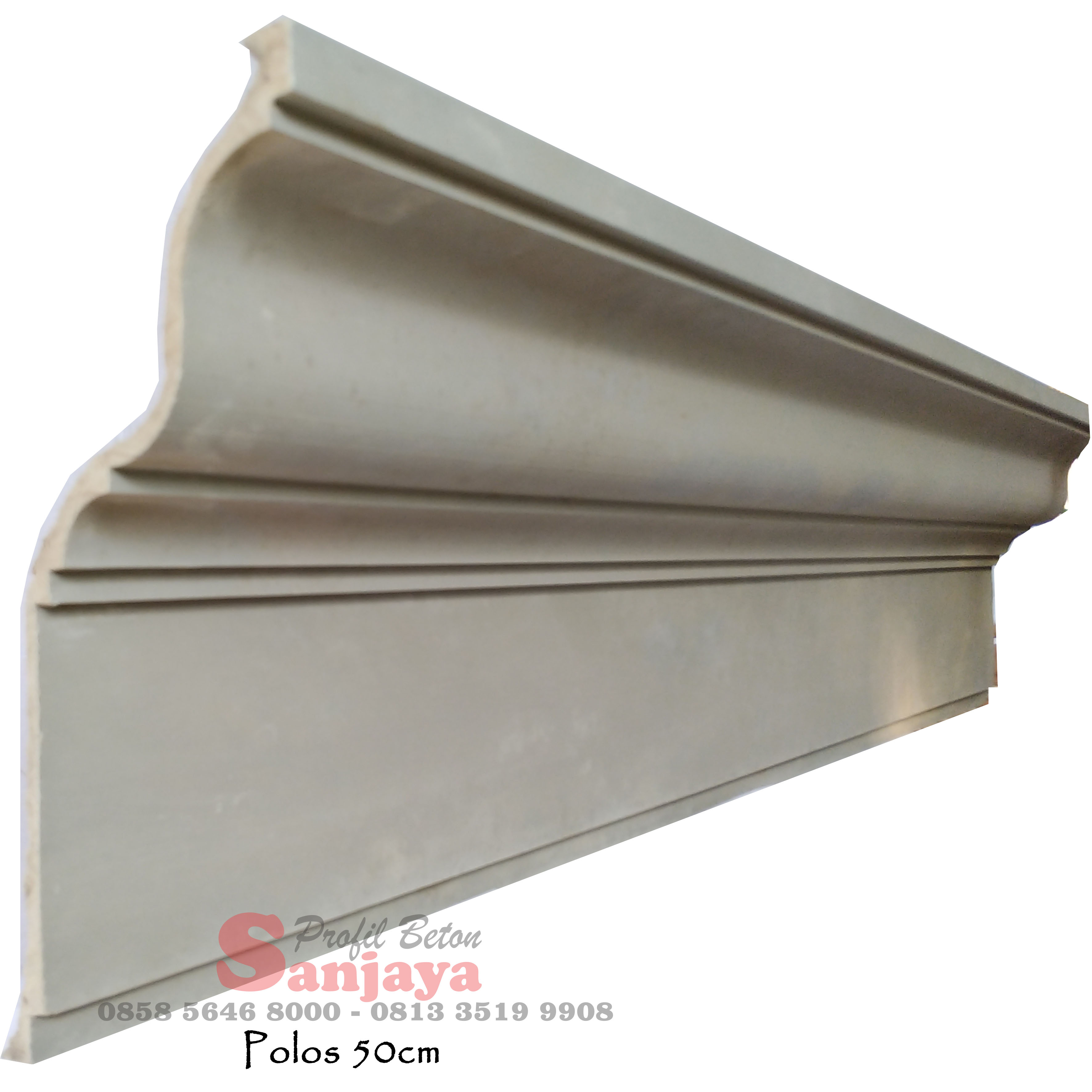 Material yang umum digunakan meliputi kayu berkualitas, GRC (Glassfibre Reinforced Concrete), atau beton pracetak yang kuat dan tahan lama. Dengan lebar 50 cm, lisplang ini cocok untuk bangunan berukuran kecil hingga sedang, memberikan proporsi yang pas dan estetika yang halus pada tepi atap.