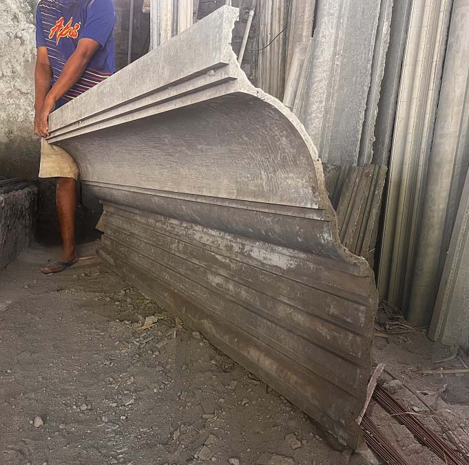 Lisplang beton dengan ukuran lebar sekitar 70 cm, diproduksi sebagai elemen tepi atap/fasad untuk bangunan yang ingin tampil lebih besar dan kokoh. Material beton pracetak memungkinkan finishing motif maupun polos, cocok untuk gaya modern, minimalis, maupun bangunan komersial.