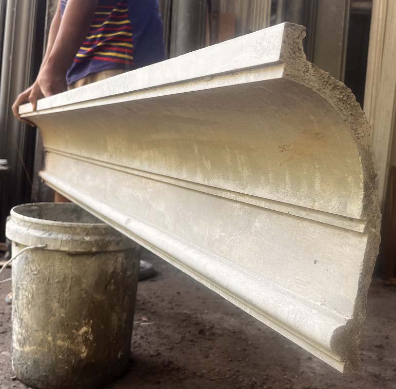 Material yang umum digunakan meliputi kayu berkualitas, GRC (Glassfibre Reinforced Concrete), atau beton pracetak yang kuat dan tahan lama. Dengan lebar 50 cm, lisplang ini cocok untuk bangunan berukuran kecil hingga sedang, memberikan proporsi yang pas dan estetika yang halus pada tepi atap.