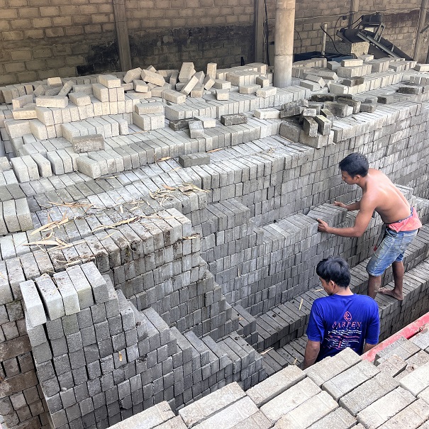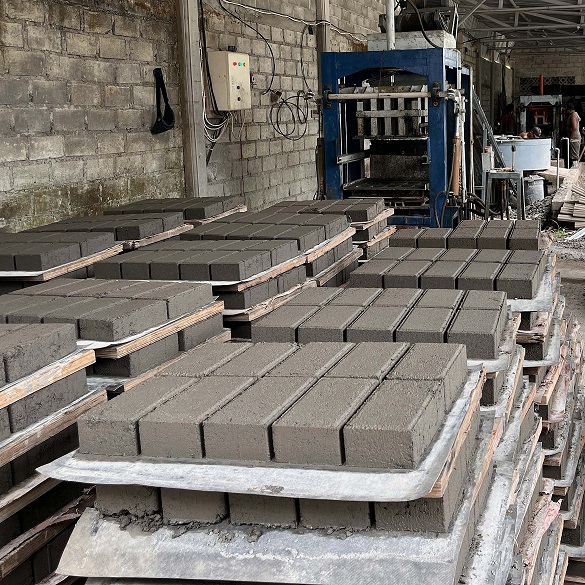 Diproses menggunakan mesin press hidrolis bertekanan tinggi, dengan vibrator cetakan untuk hasil padat dan mixer otomatis yang menjamin adukan bahan homogen.